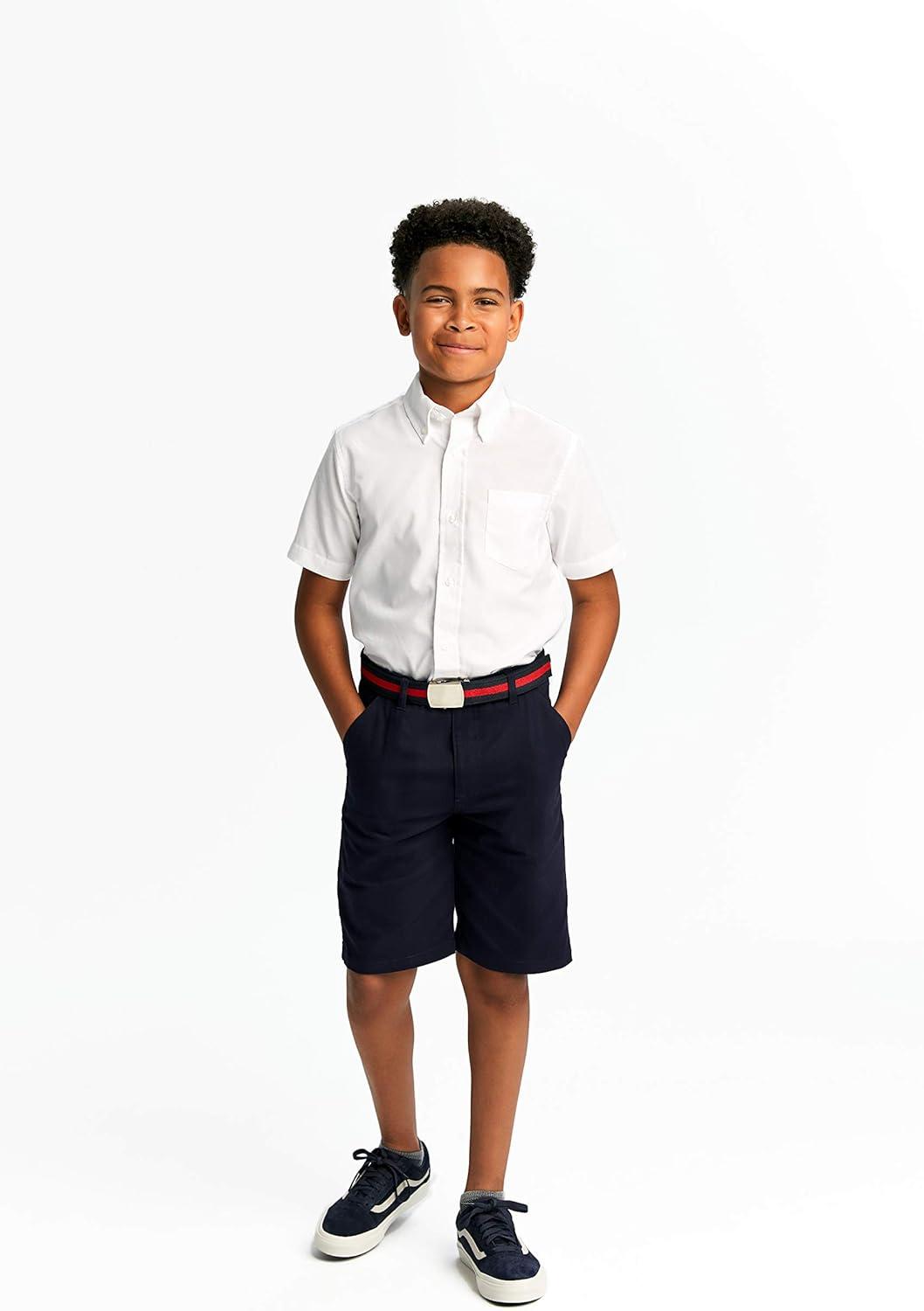 French Toast Men’s Short Sleeve Poplin Dress Shirt(White Stretch)