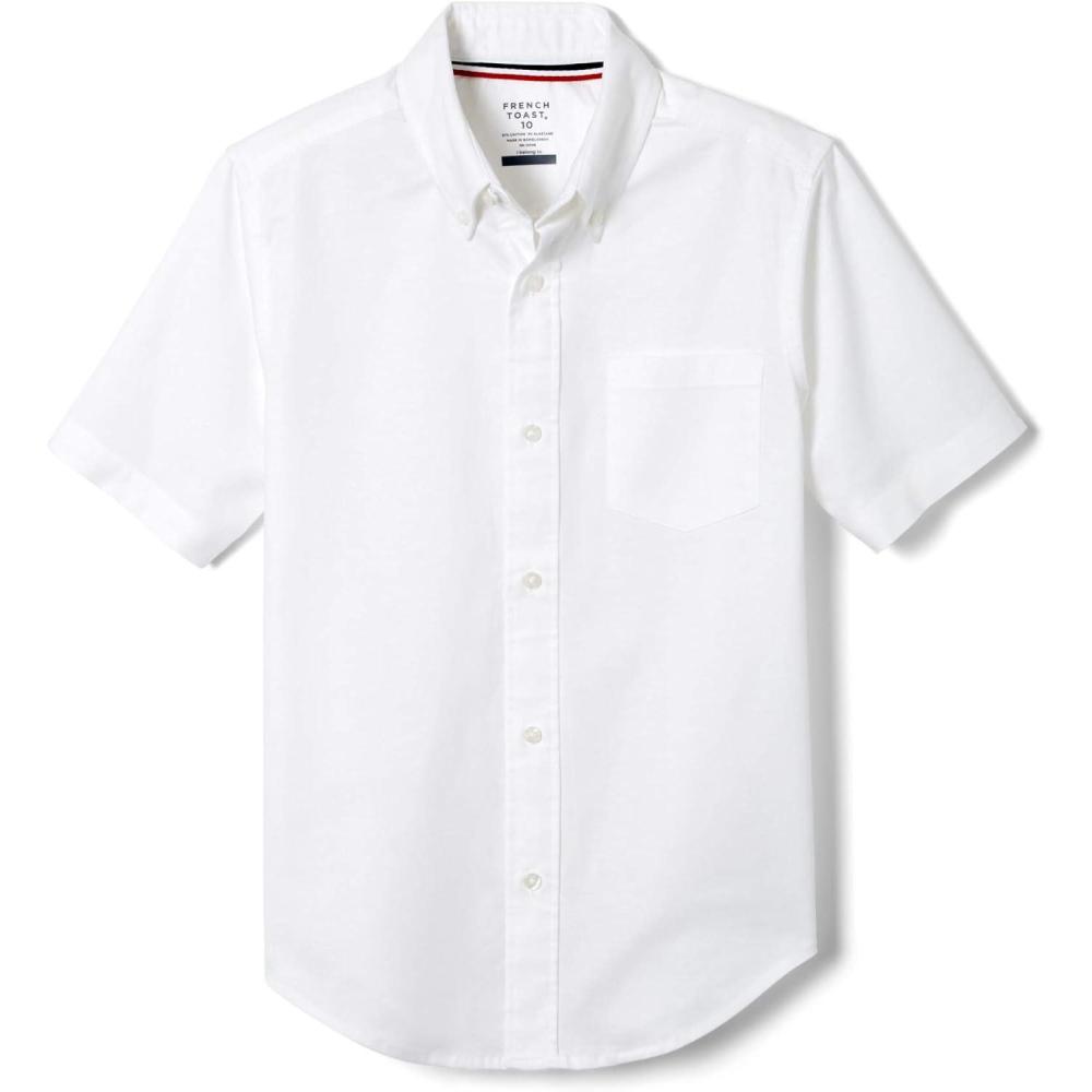 French Toast Men’s Short Sleeve Poplin Dress Shirt(White Stretch)